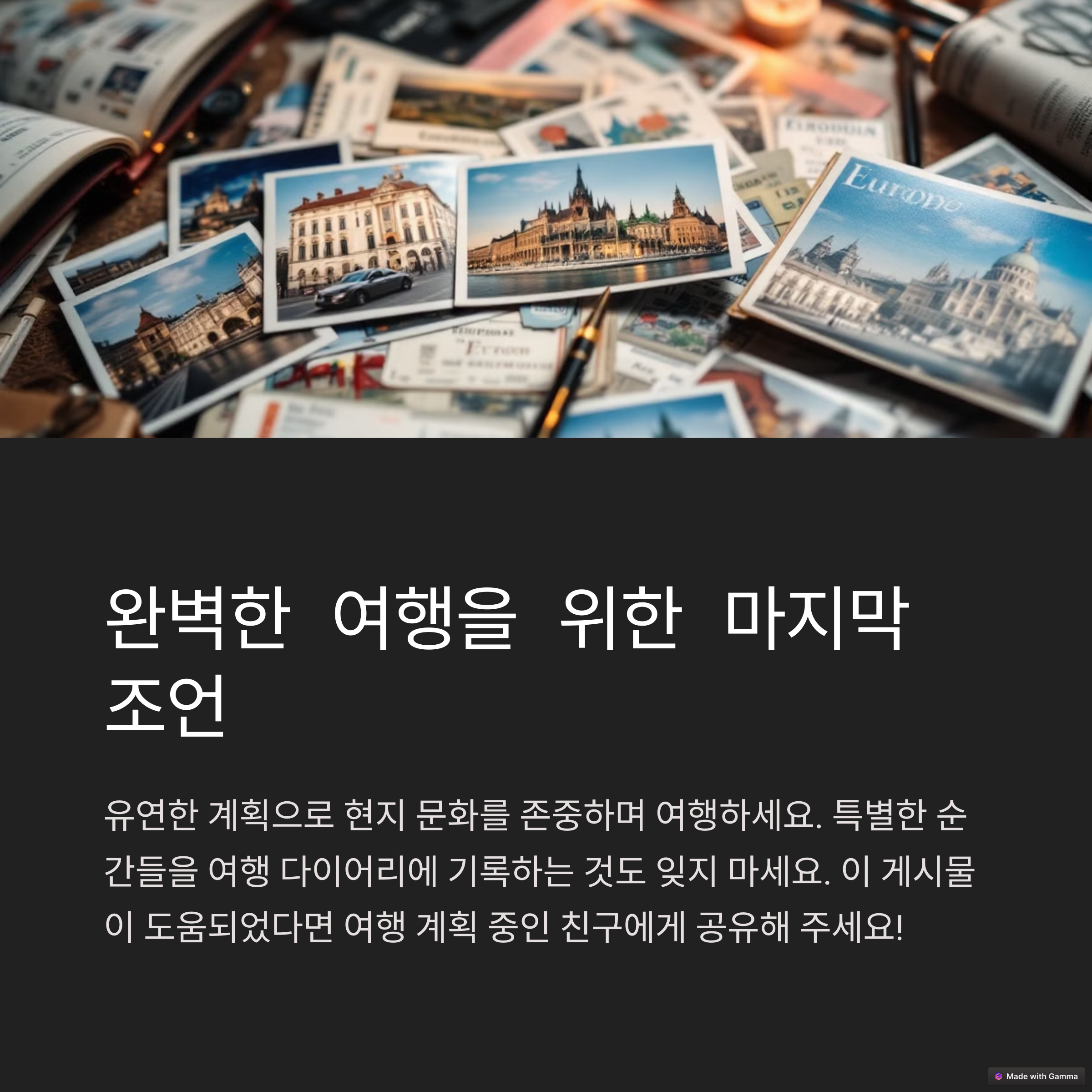유럽 여행은 각 도시의 특색을 인정하고 각각의 아름다움을 즐길 때 더욱 풍성해집니다.