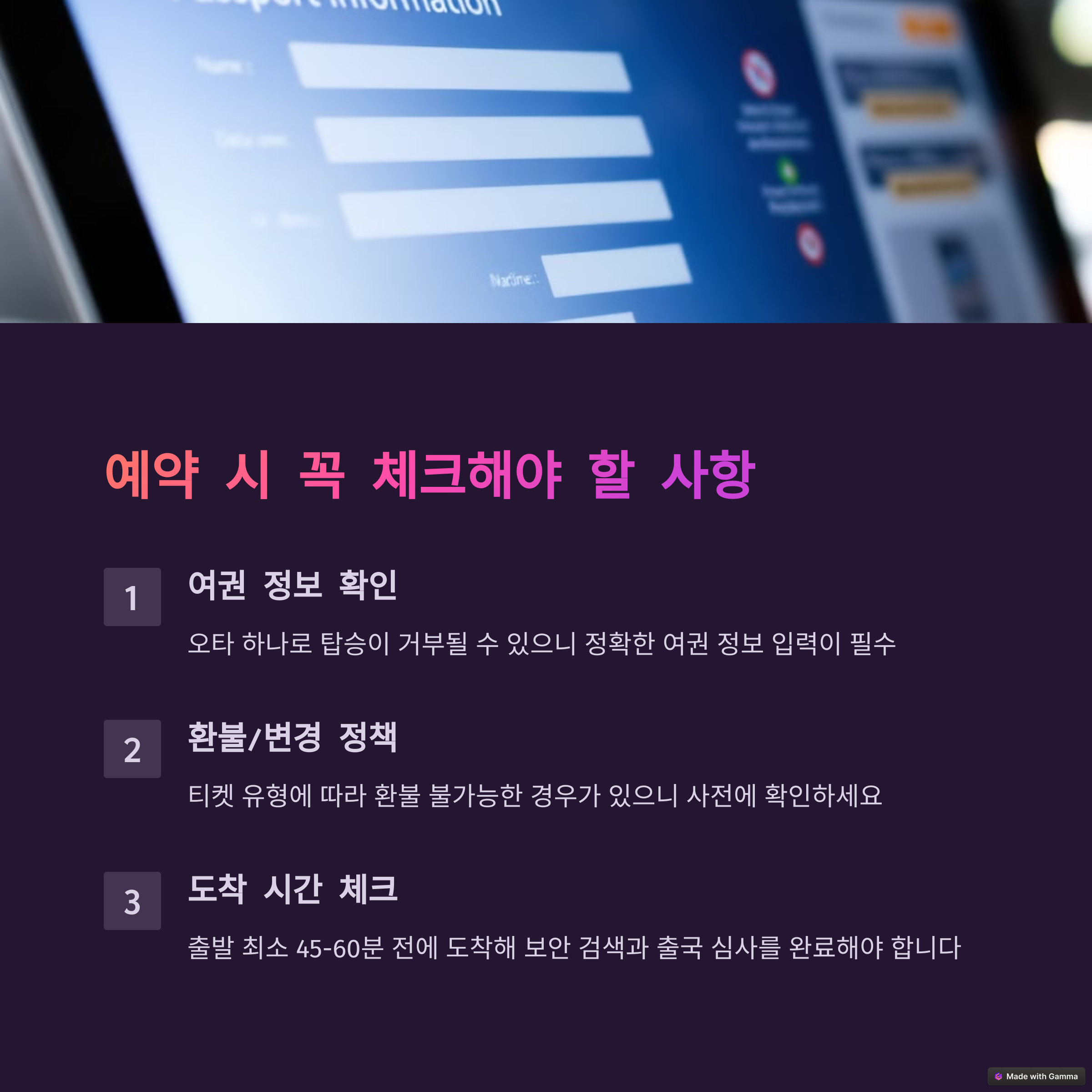 정확한 여권 정보를 입력하지 않으면 탑승이 거부될 수 있기 때문에, 예약 시 유의하세요.