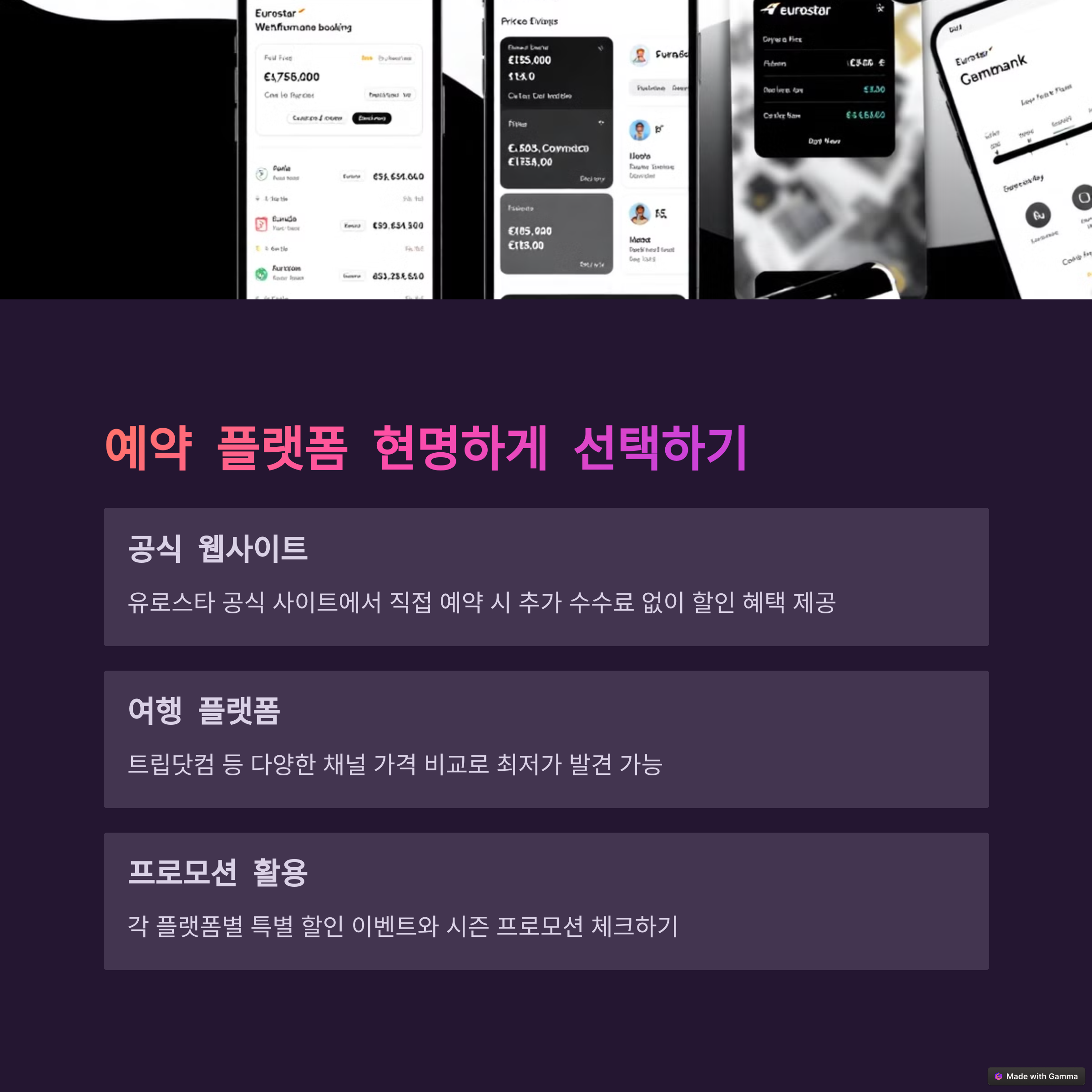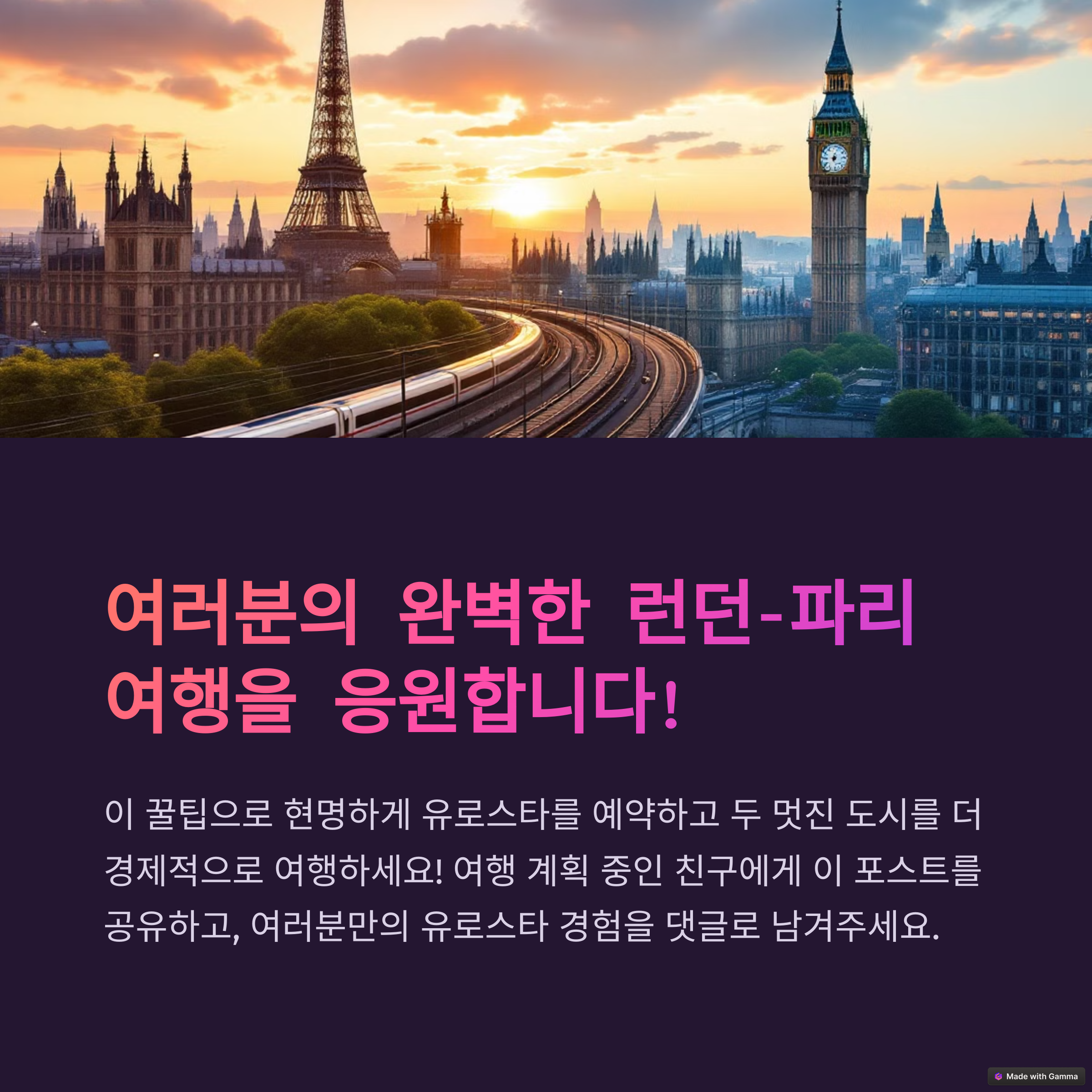 여행의 시작과 끝을 더욱 특별하게 만들어주는 유로스타를 경험해보고 싶으시다면, 지금 바로 예약해보세요.