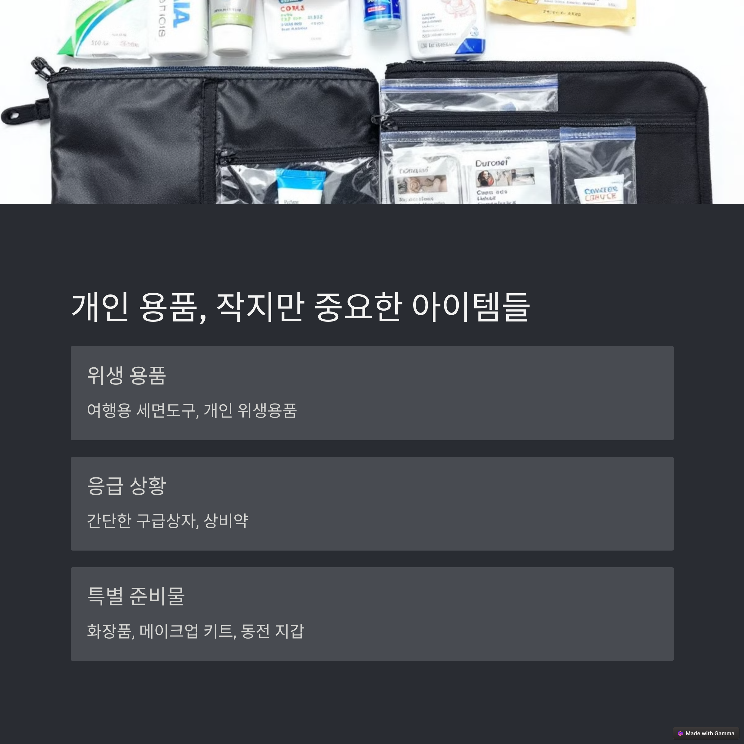 오늘은 여행의 필수 준비물을 하나씩 짚어보도록 하겠습니다.