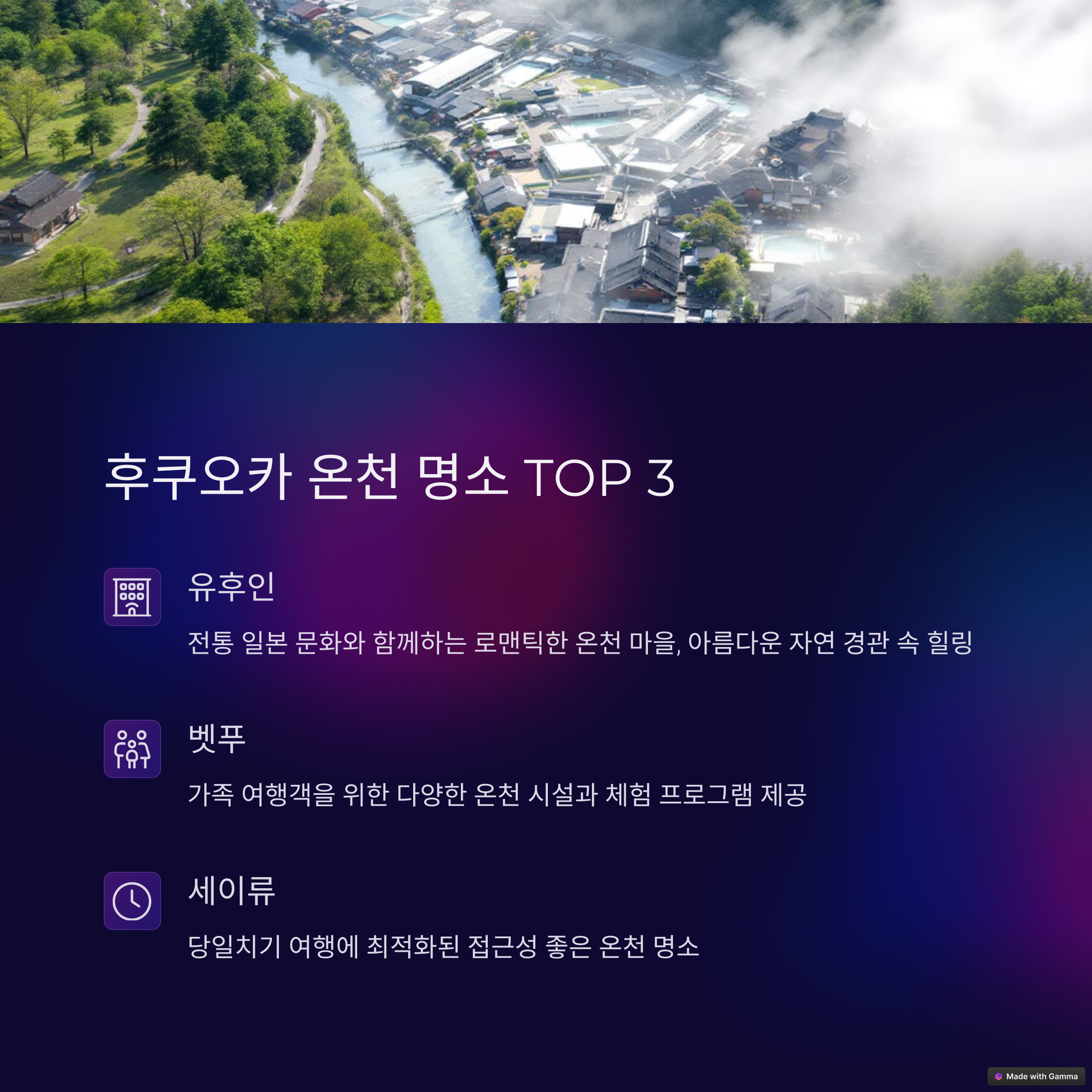 최신 정보를 바탕으로, 후쿠오카의 주요 온천지와 여행 팁을 준비했습니다.