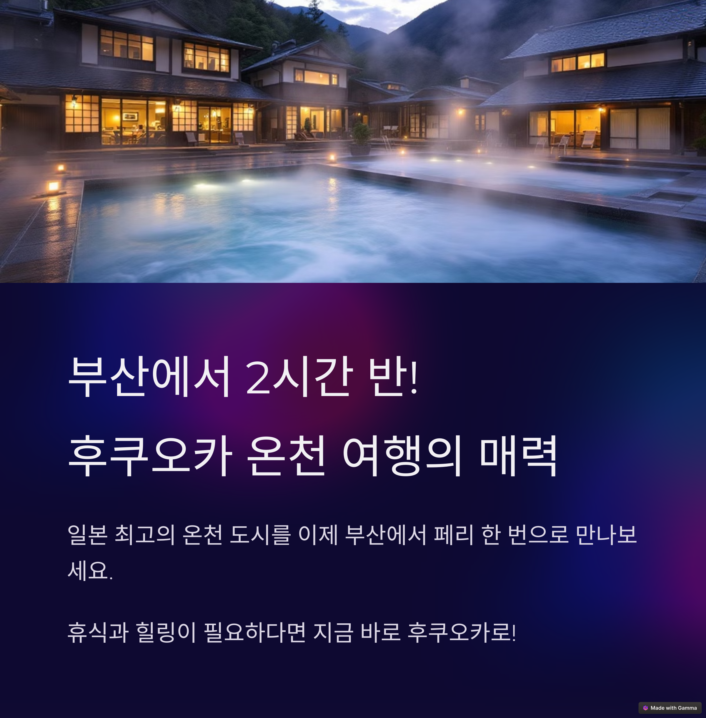 후쿠오카로의 온천 여행은 짧은 일정에서도 풍성한 즐거움을 선사하는 최고의 선택일 것입니다.
