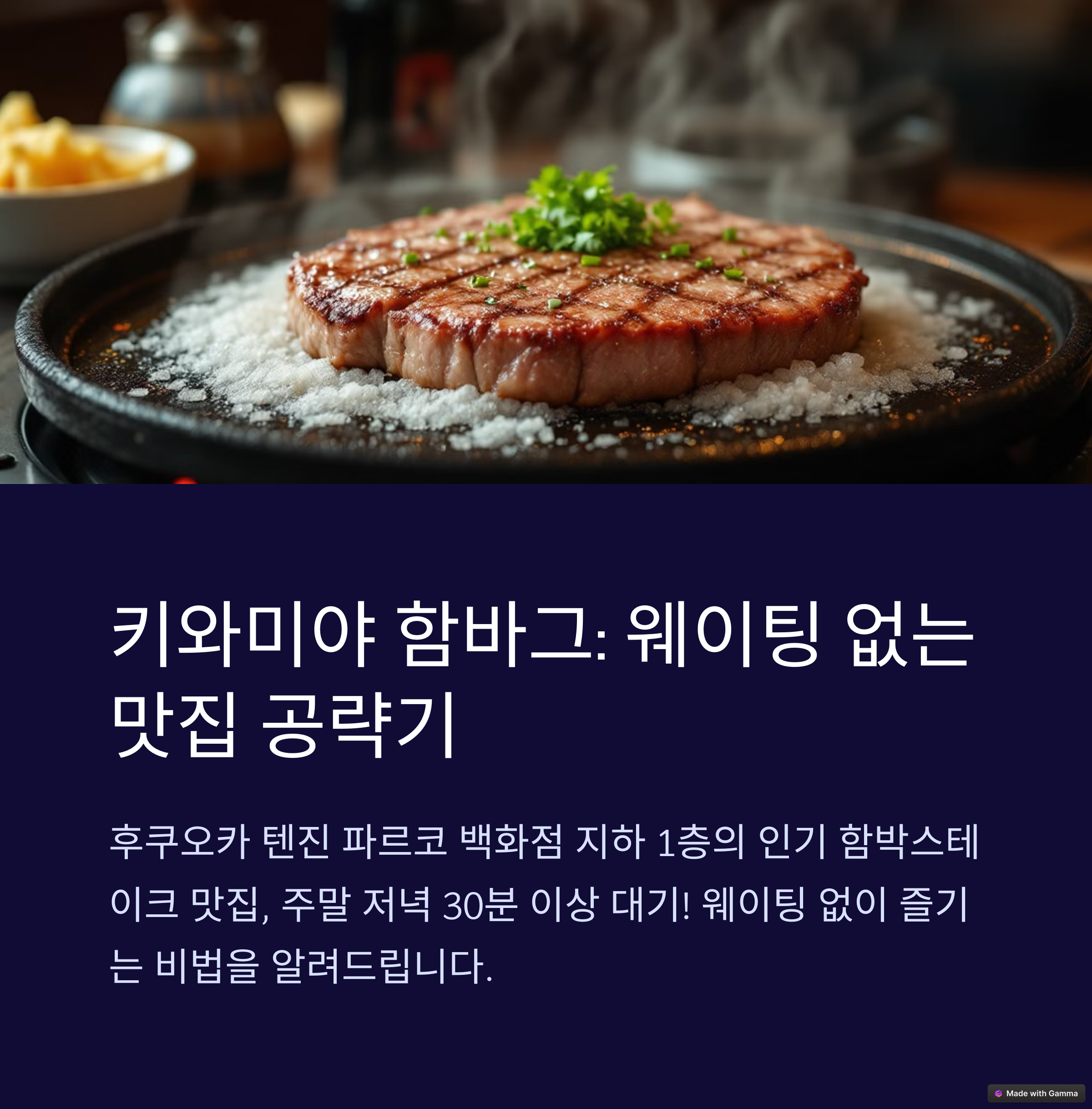 오늘은 후쿠오카 텐진의 맛집, 키와미야 함바그에 대해 소개드립니다.