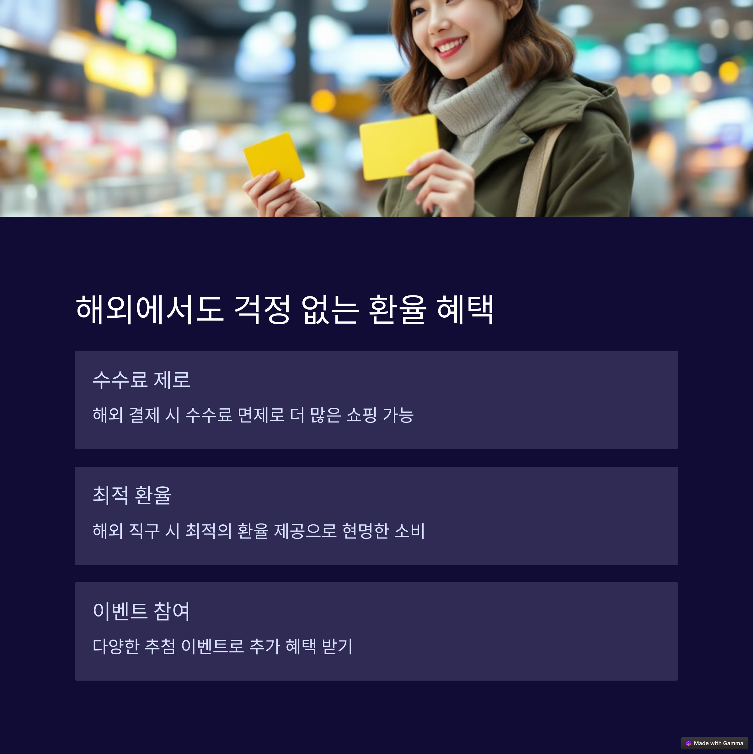 현재 해외 결제를 위한 최적의 카드로 평가받고 있습니다.