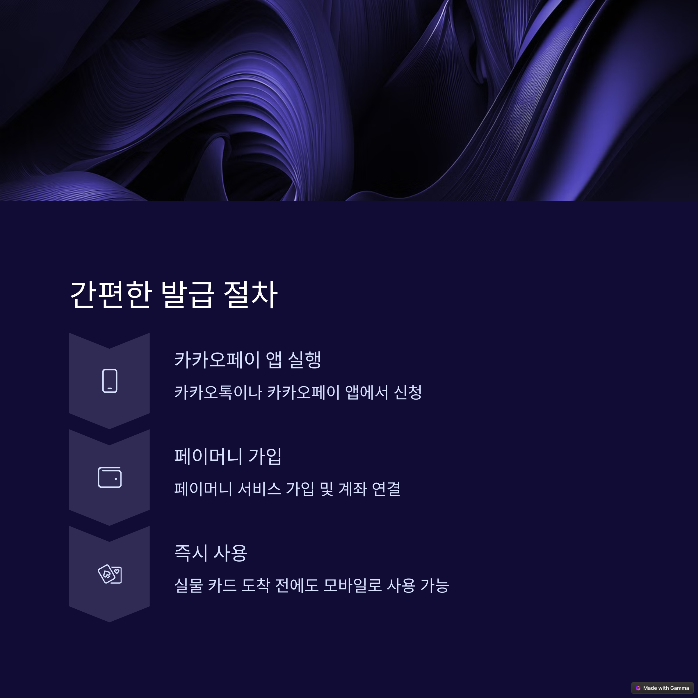 발급 과정이 간단하지만 몇 가지를 유념해야 합니다. 만 17세 이상의 내국인만 발급받을 수 있으니 연령 기준을 충족해야 합니다. 페이머니 계좌와 연동 되어야만 카드 신청이 가능합니다. 온라인 신청을 진행하기 전에 모바일 앱의 최신 버전 여부를 확인해야 합니다. 실물 카드 배송은 보통 7일 정도 소요되며 지역에 따라 지연 가능성이 있습니다. 초기 충전된 금액과 추가 충전 조건을 명확히 이해하고 관리하는 것이 중요합니다. |