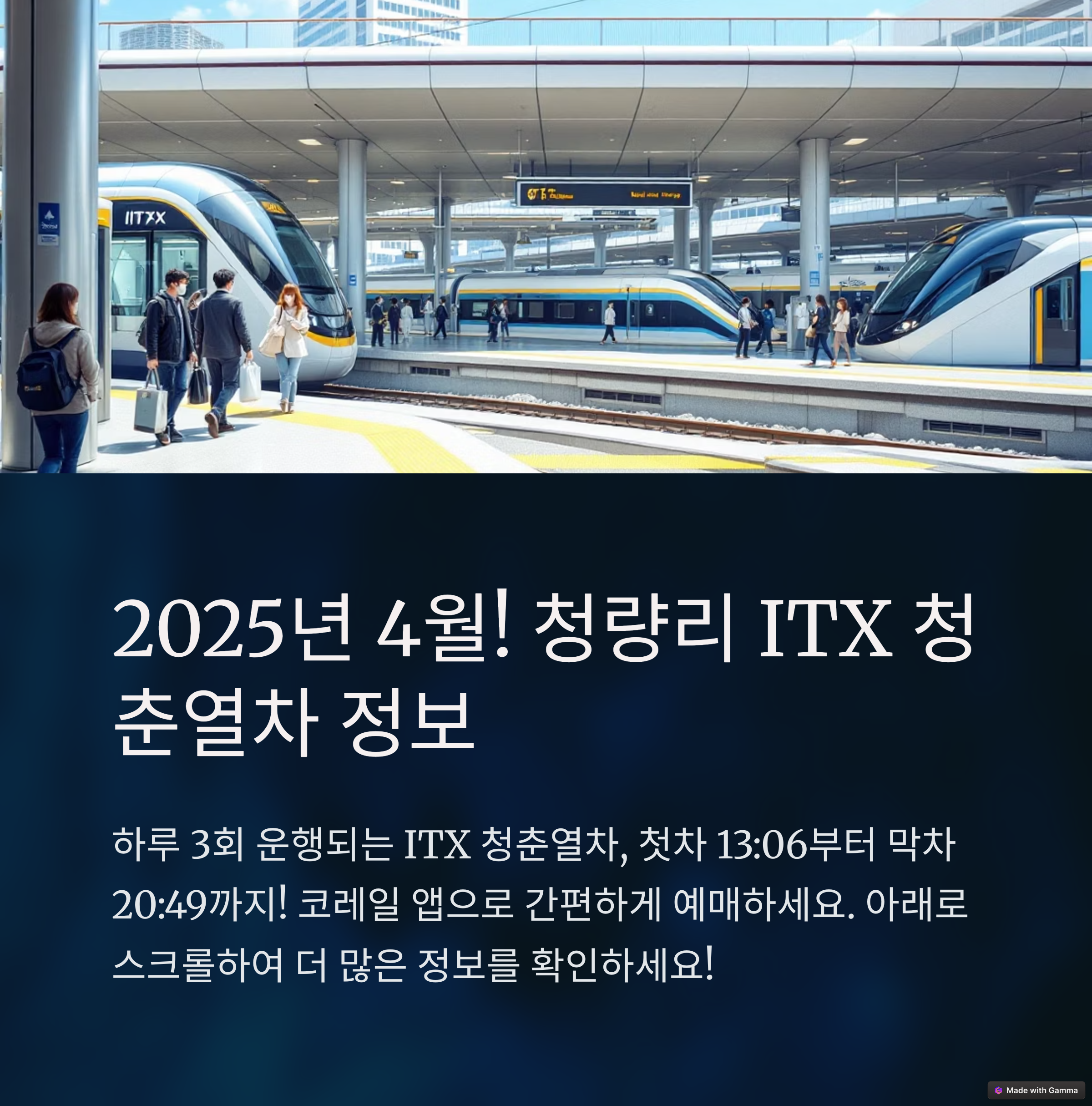 이번 여행에서는 효율적인 시간 관리와 함께 ITX 청춘 열차의 장점을 십분 활용하시기 바랍니다.