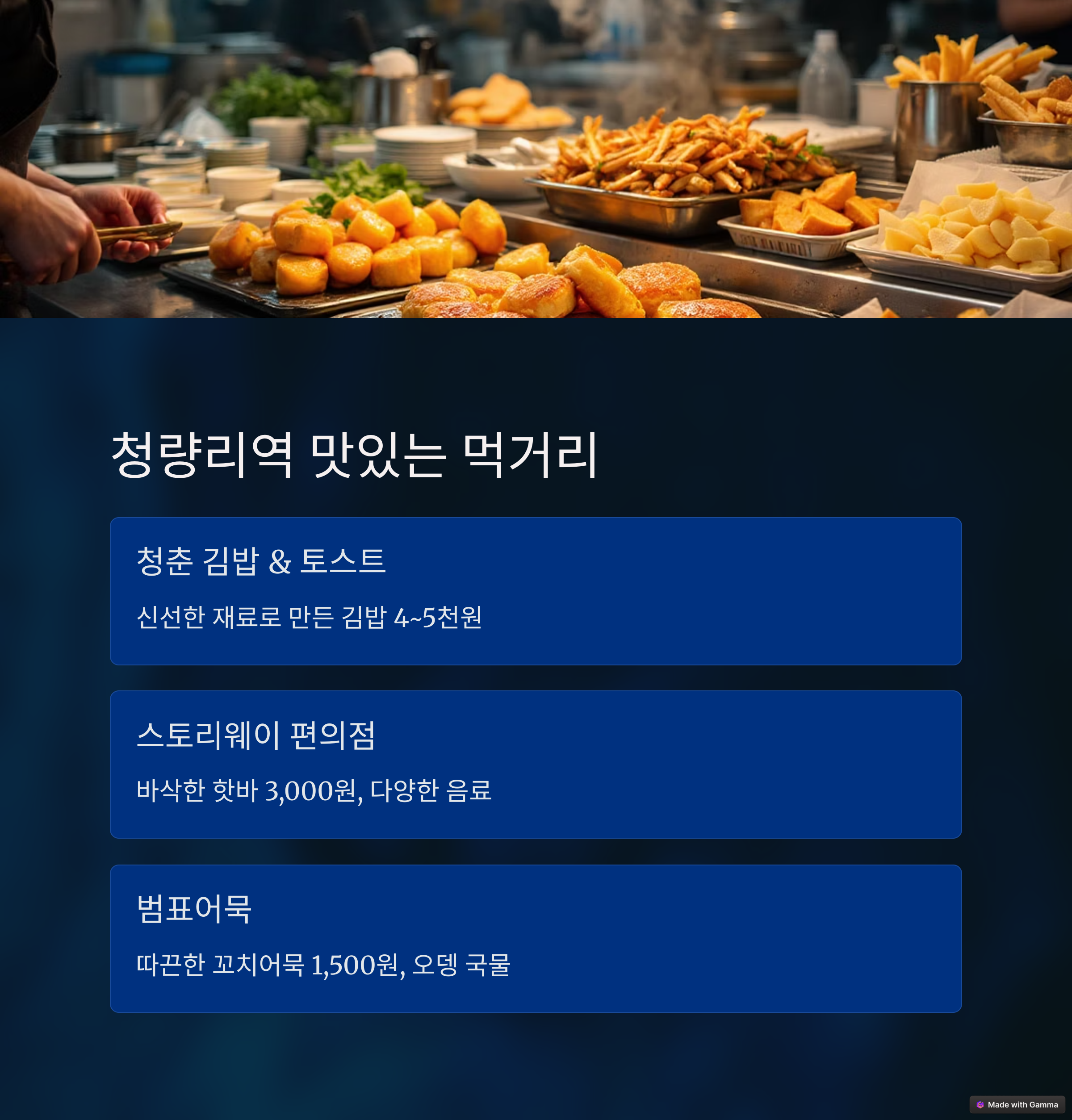 가성비 좋은 유부김밥과 크리미 토스트는 하루를 풍성하게 시작하기에 적합합니다.