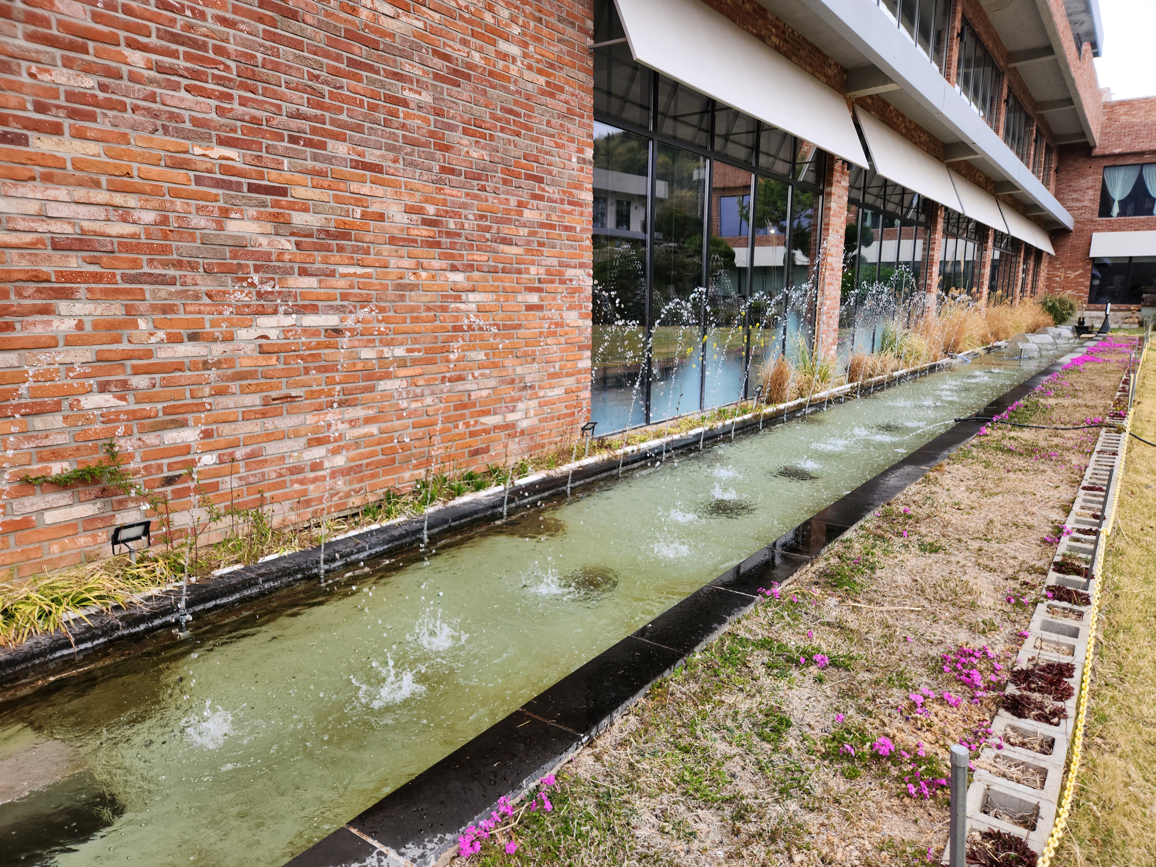 | 분수, 잔디밭, 포토존이 어우러진 휴식 공간 | 아이들이 즐겁게 놀 수 있는 안전한 공간 | 조용하고 차분한 분위기의 2층, 루프탑 |