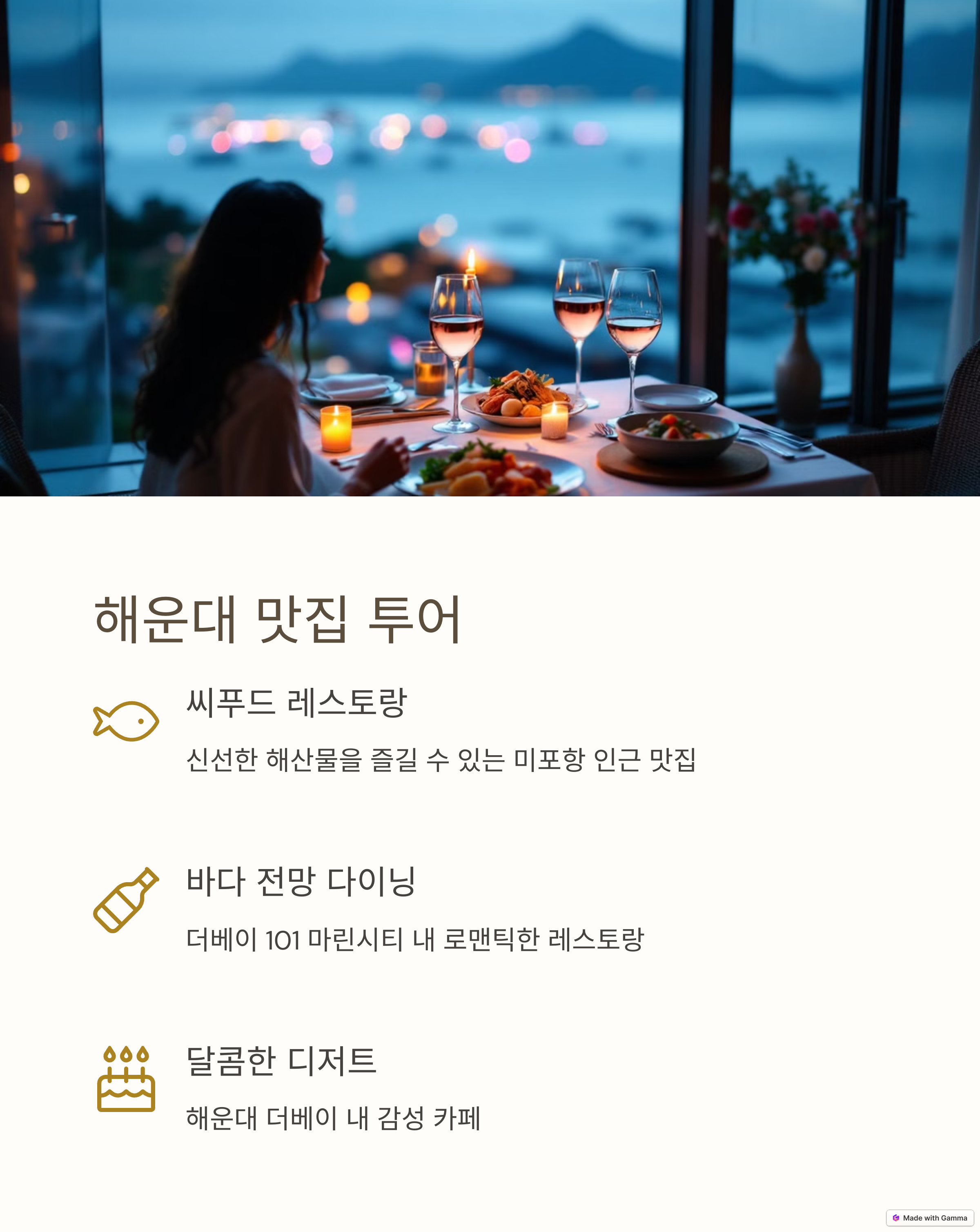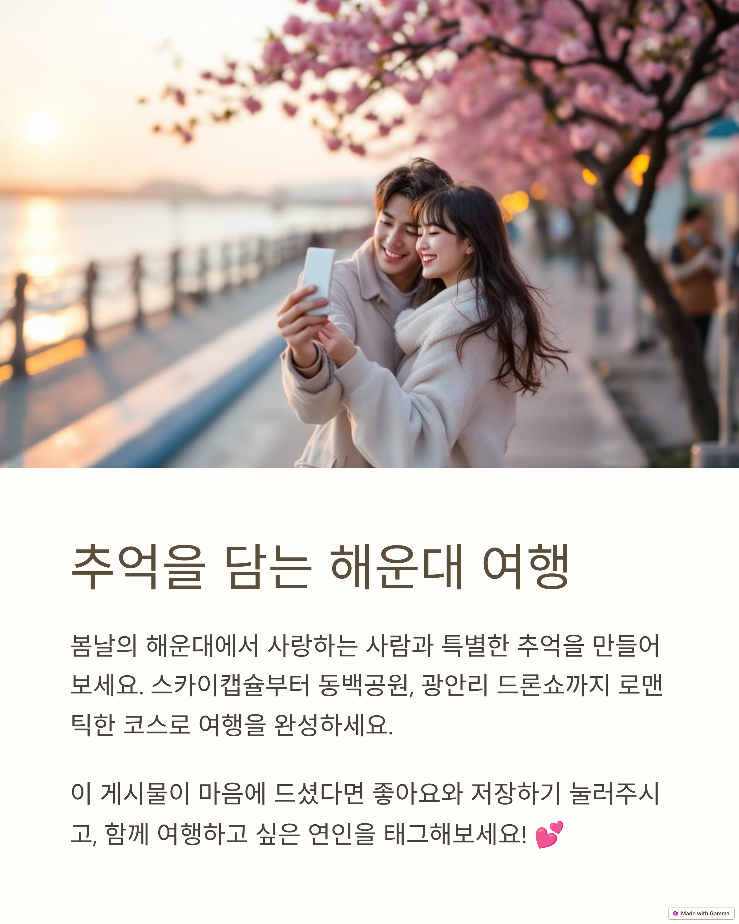 해운대의 숨겨진 명소나 커플들에게 추천하고 싶은 감성 코스가 있다면 댓글로 공유해 주세요. 여러분의 한 줄이 또 다른 커플에게 멋진 여행의 시작이 될 수 있습니다.