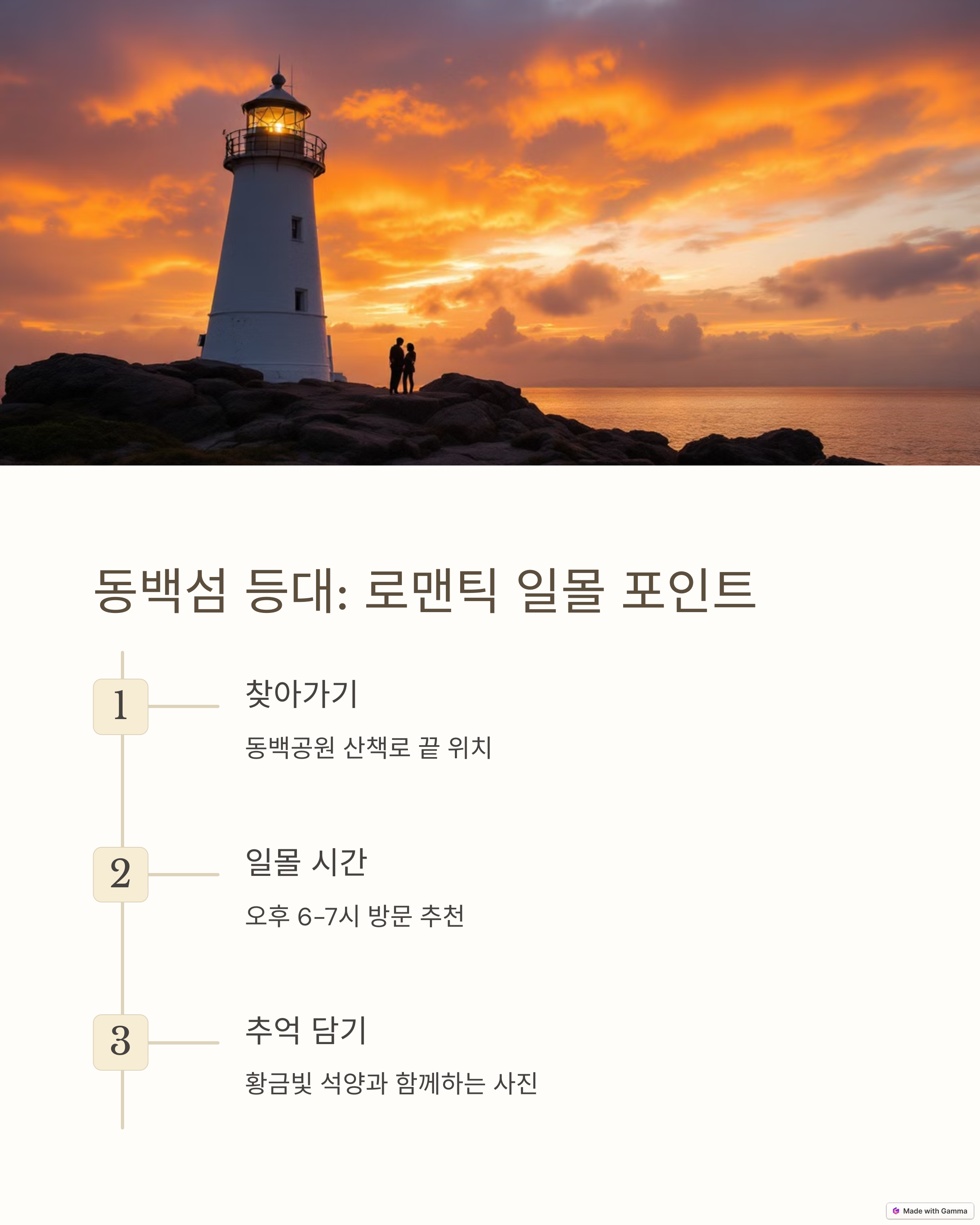 | 인생 사진 명소로 인기 | 일출과 일몰 포인트로 유명 | 커플 여행의 마무리 이벤트 |