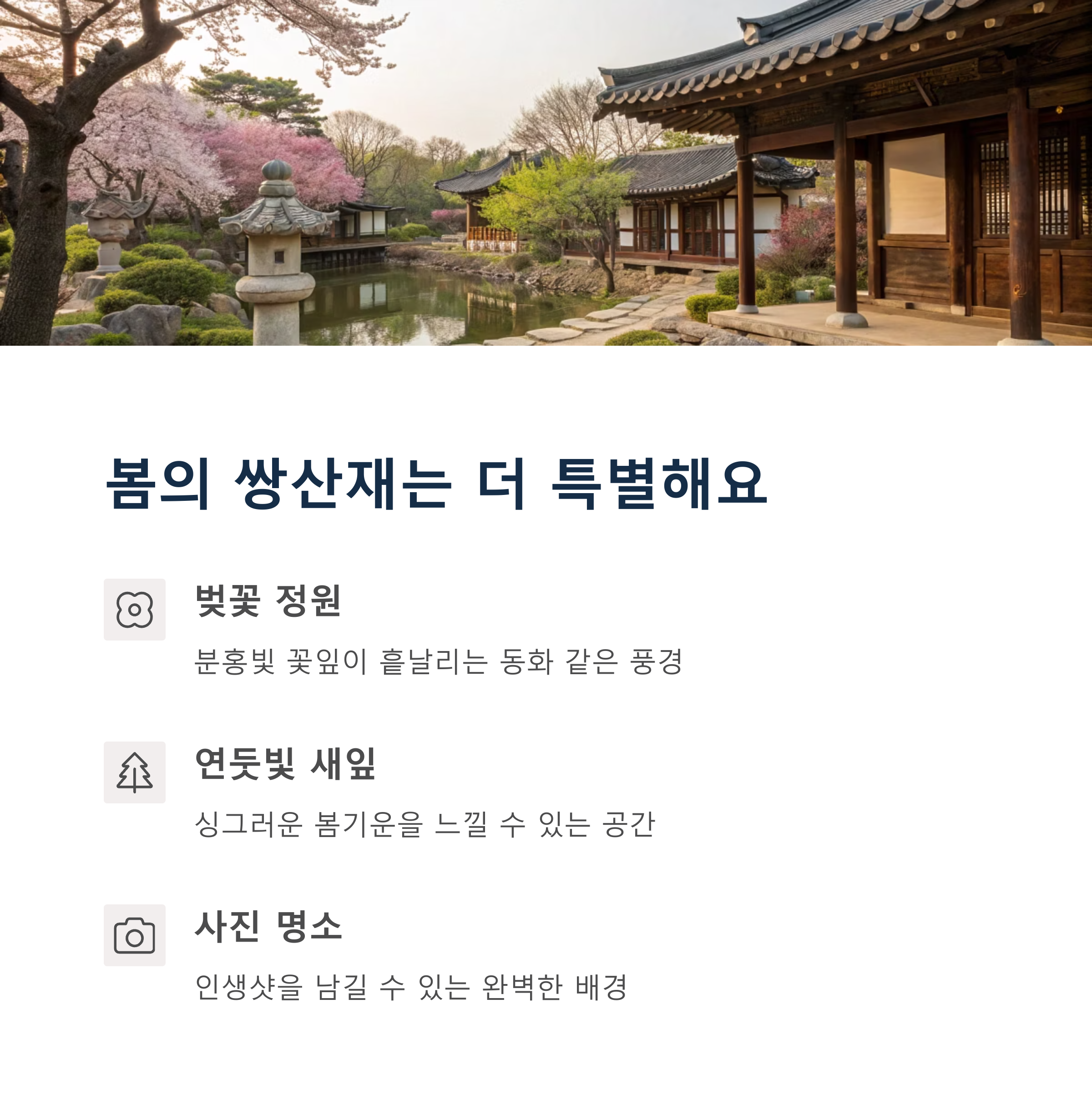 자연과 전통이 어우러진 이곳은 새로운 출발을 위한 찬란한 봄을 준비하는 데 딱 맞는 여행지입니다.