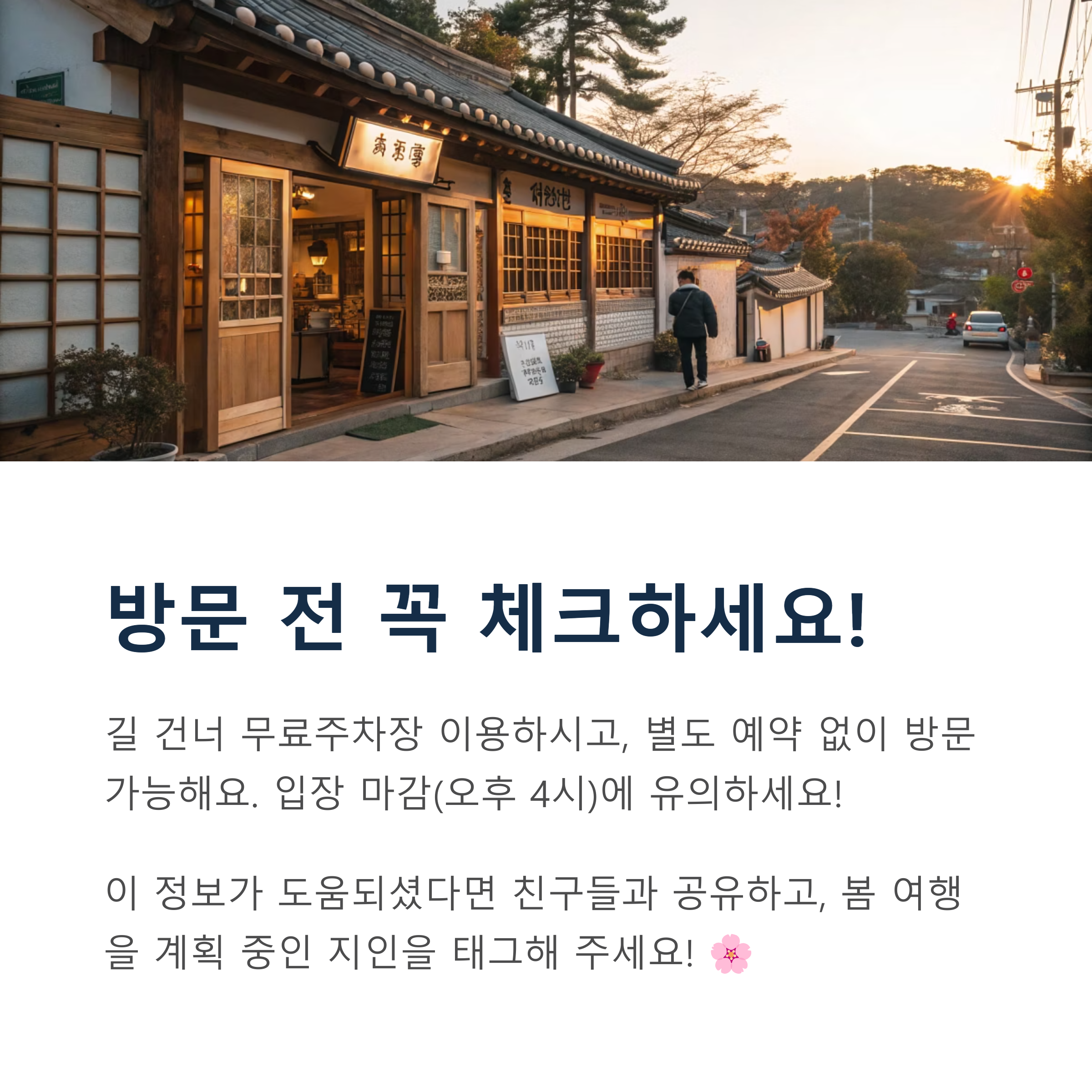 이곳은 아름다운 전통 한옥과 정원으로 유명하며, 특히 봄철 벚꽃 시즌에 감상하기 좋은 추천 장소입니다.