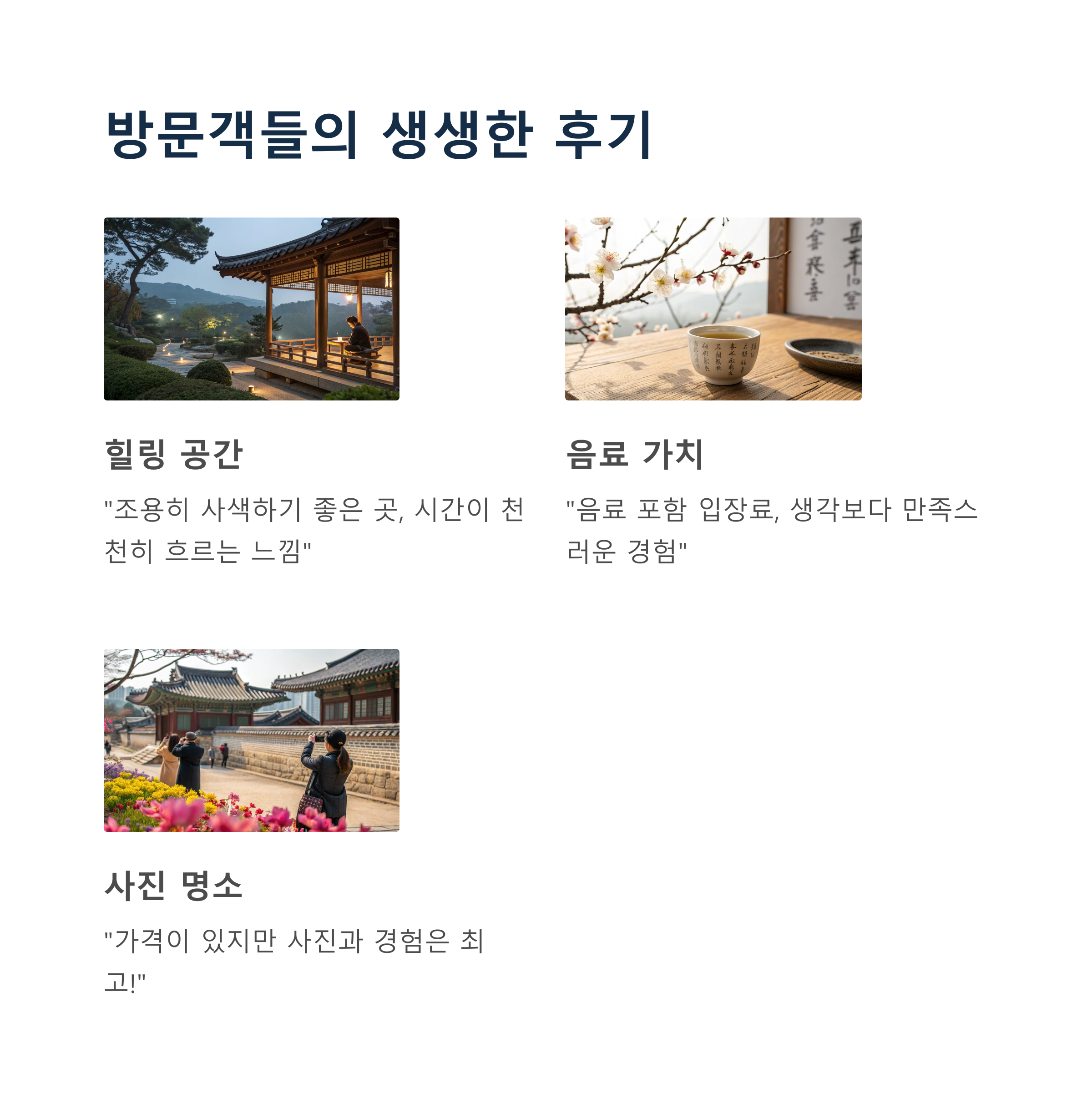 입장료 10,000원은 다소 비싸게 느껴질 수 있지만, 한옥의 멋과 무료 음료 혜택을 고려하면 충분히 만족스러운 경험을 제공합니다.