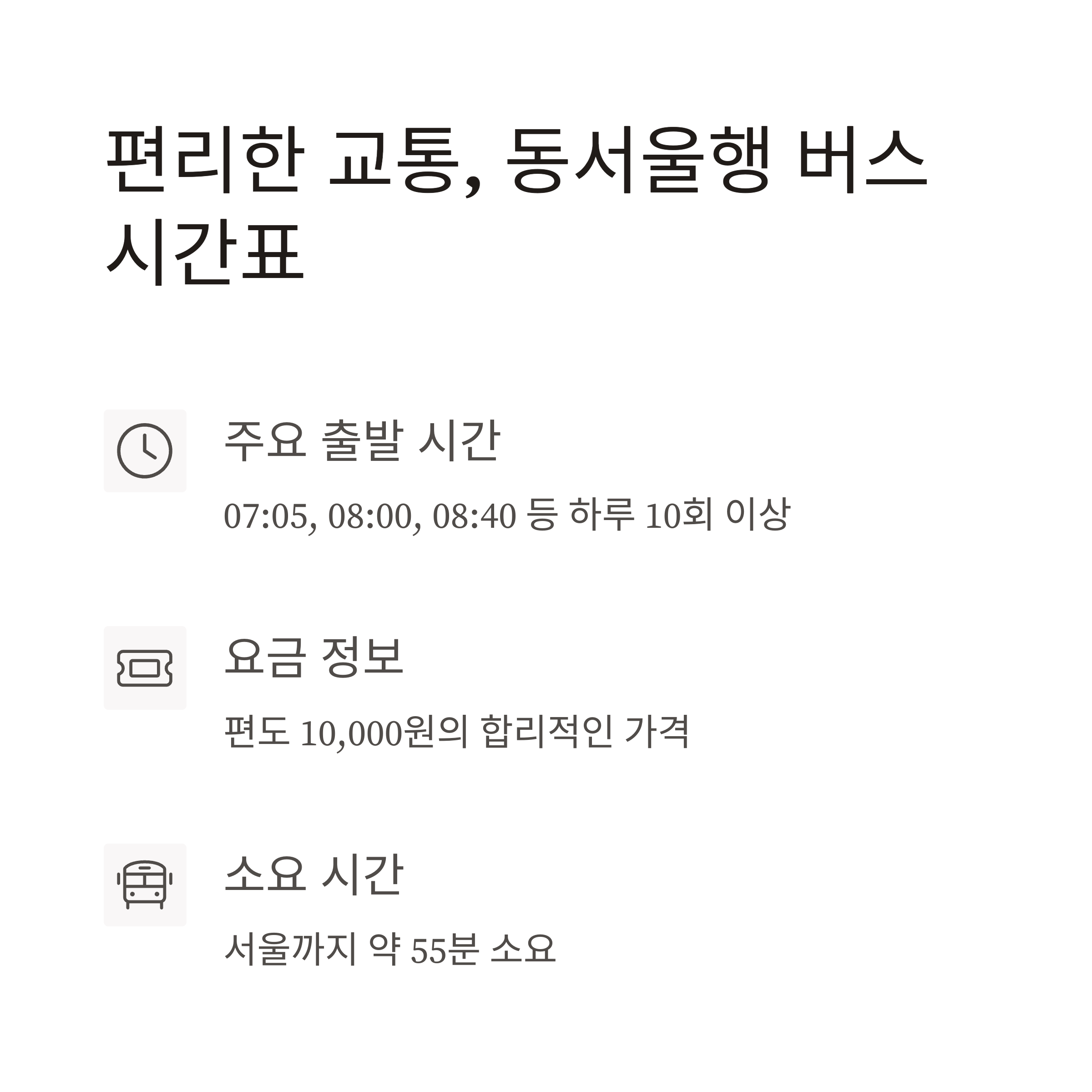 | 소요 시간 | 약 55분 (동서울 기준) |