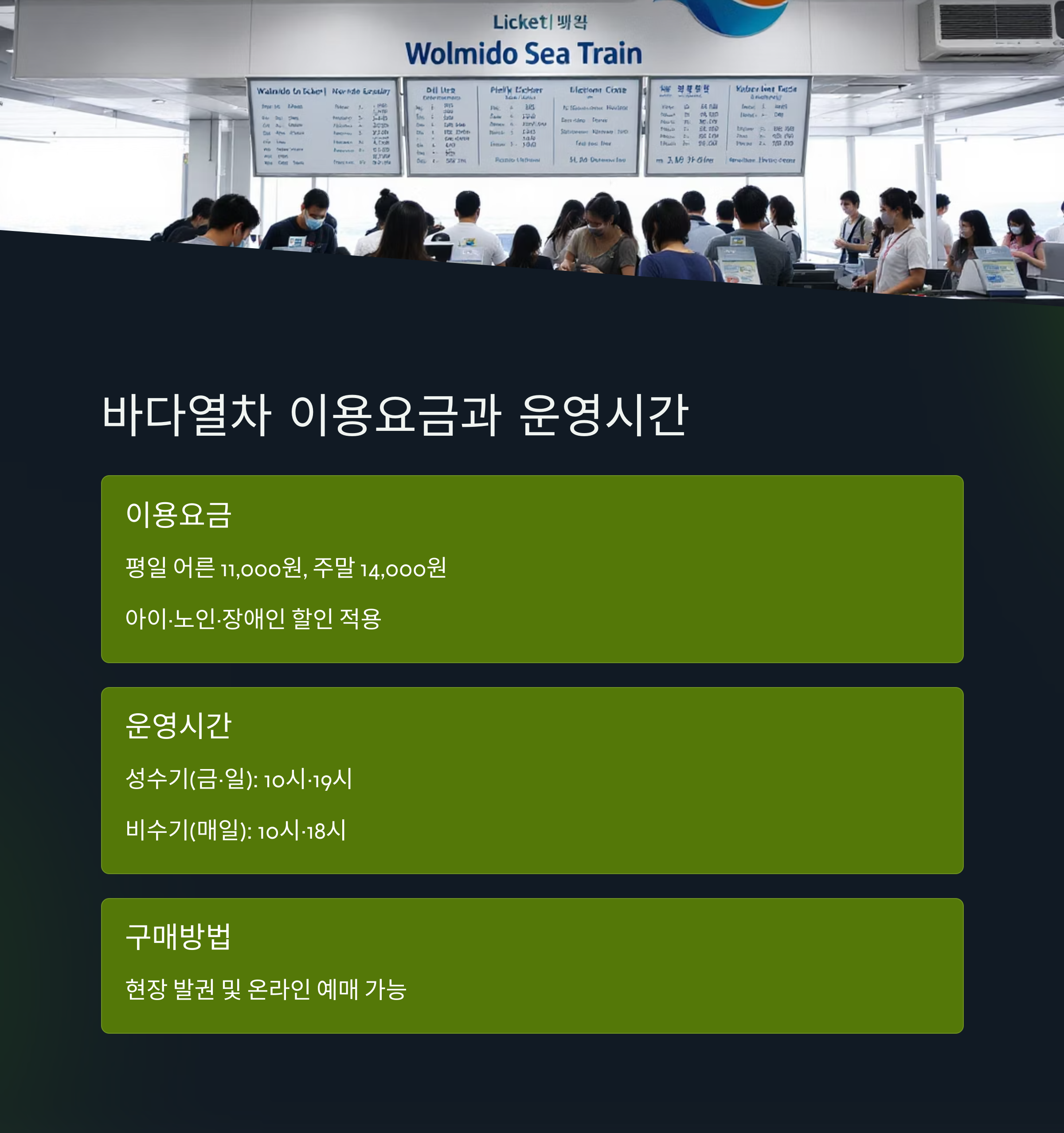 | Q. 월미도 바다열차의 인기가 높은 이유는 무엇인가요? |