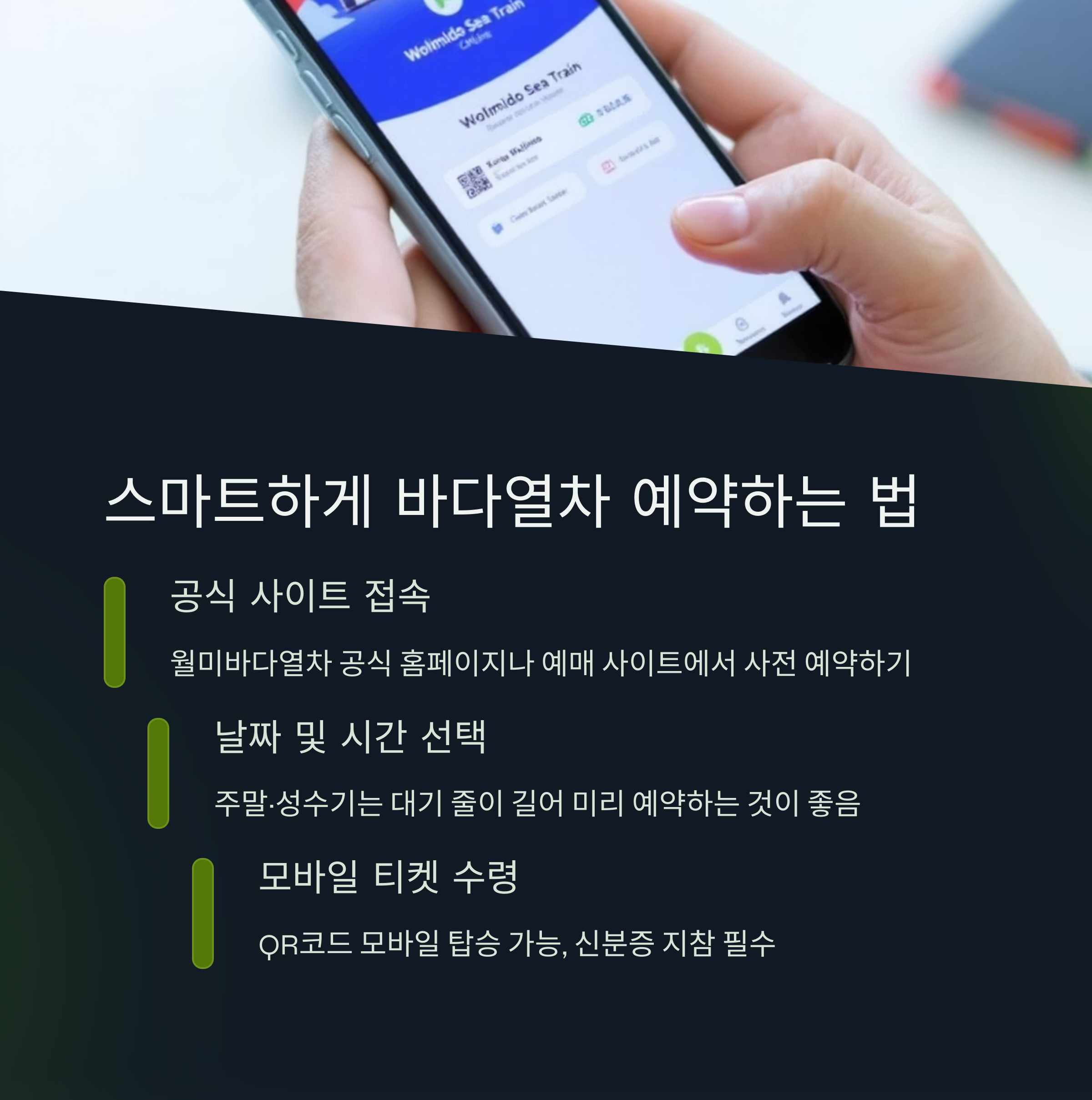 바다열차의 온라인 예약은 필수입니다. 특히 주말과 공휴일에는 사전 예약 없이는 탑승이 어렵습니다.