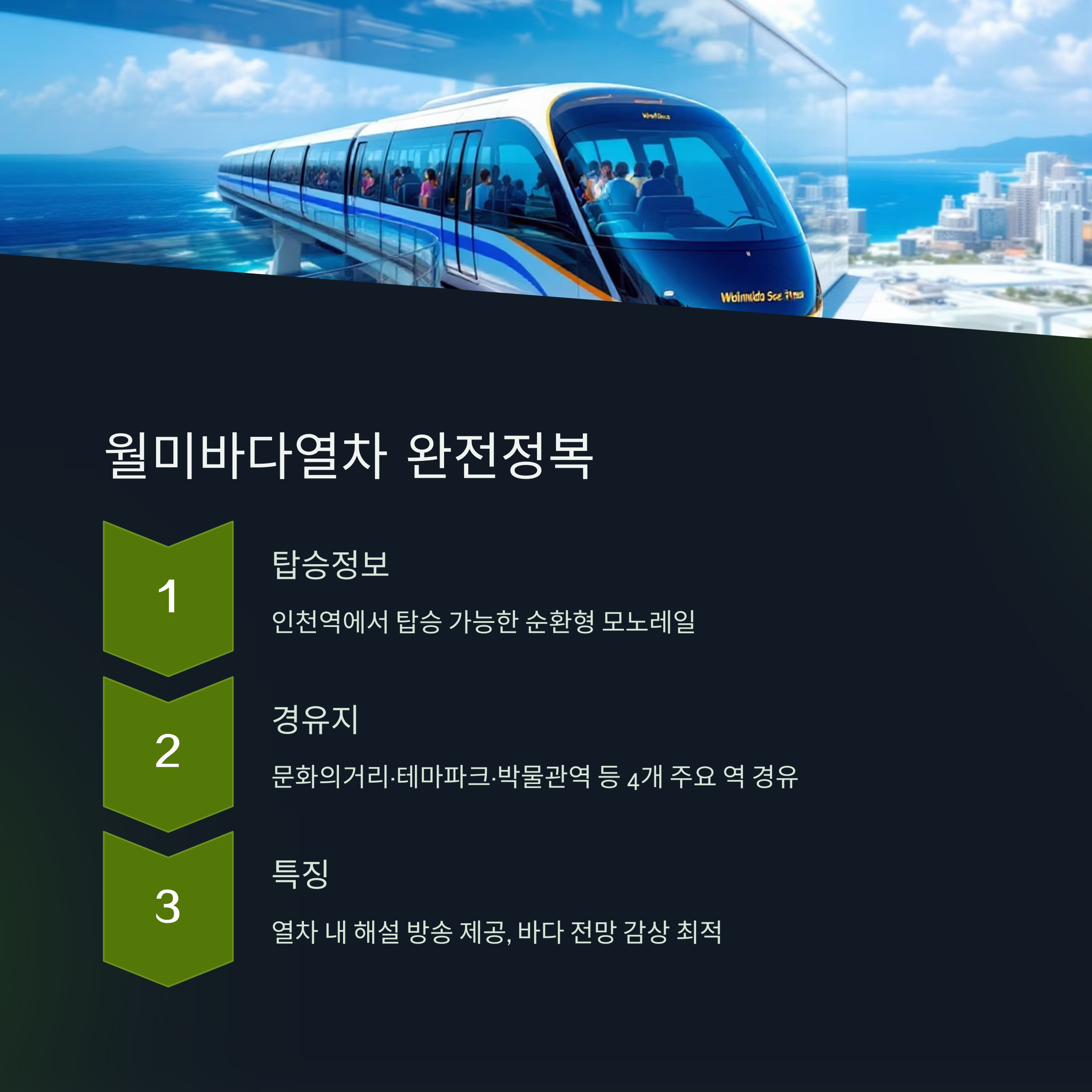 특히, 월미바다열차는 한 번 탑승하면 인천과 월미도를 잇는 경치를 감상할 수 있는 독특한 열차로 유명합니다.