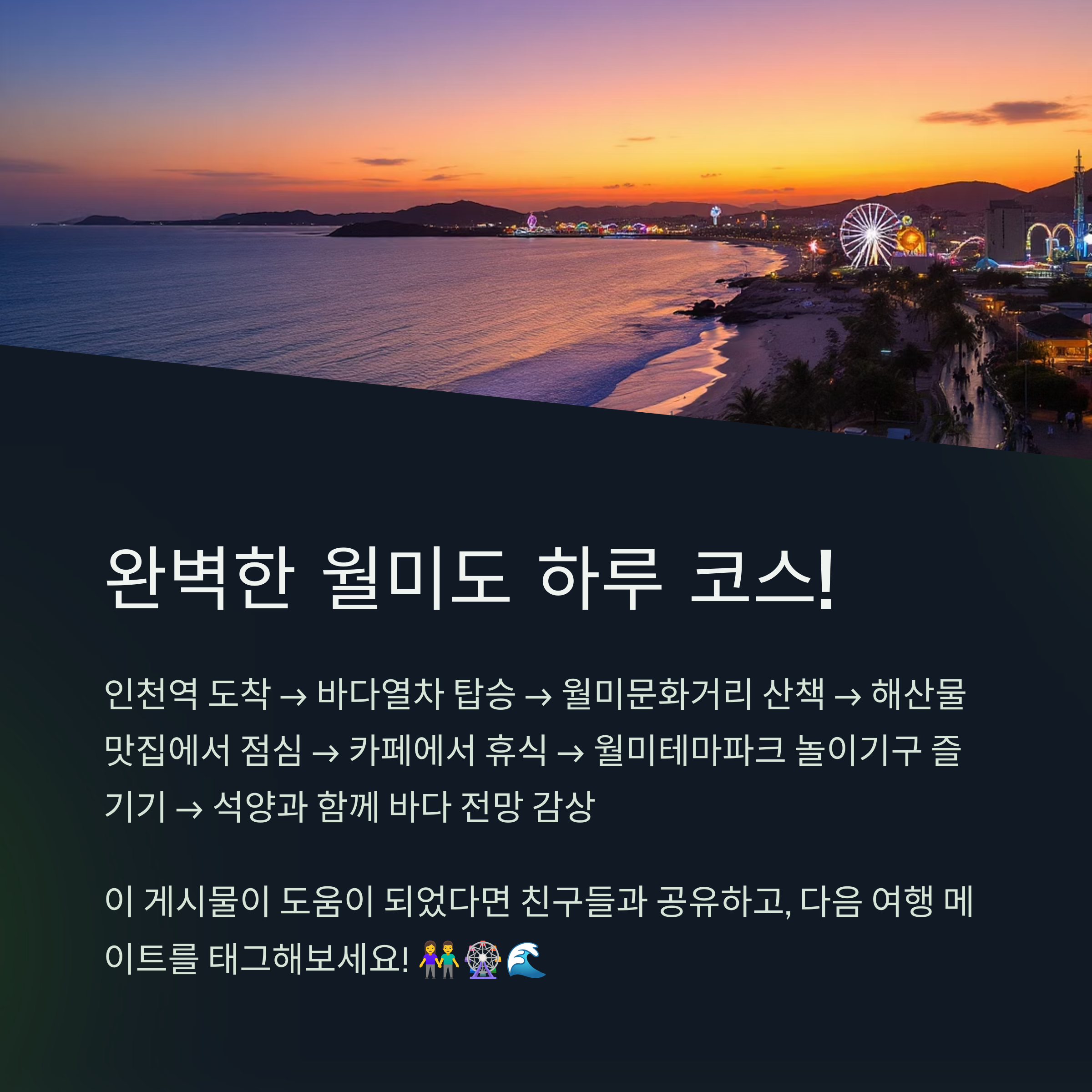 월미도는 다양한 자연과 문화적 매력을 동시에 느낄 수 있는 특별한 여행지입니다.