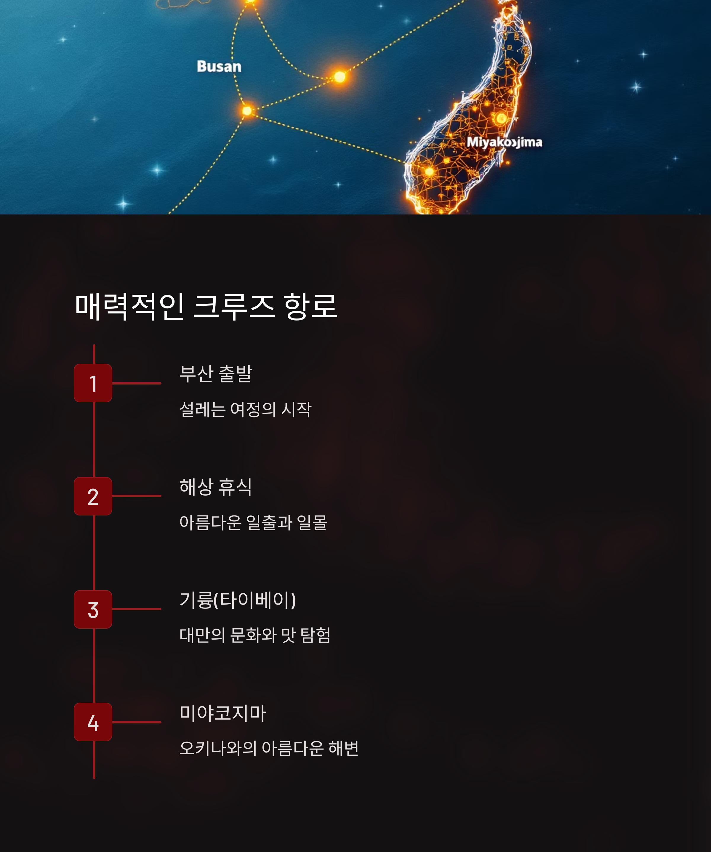 | 출발 장소 | 부산항에서 크루즈 탑승 시작 |