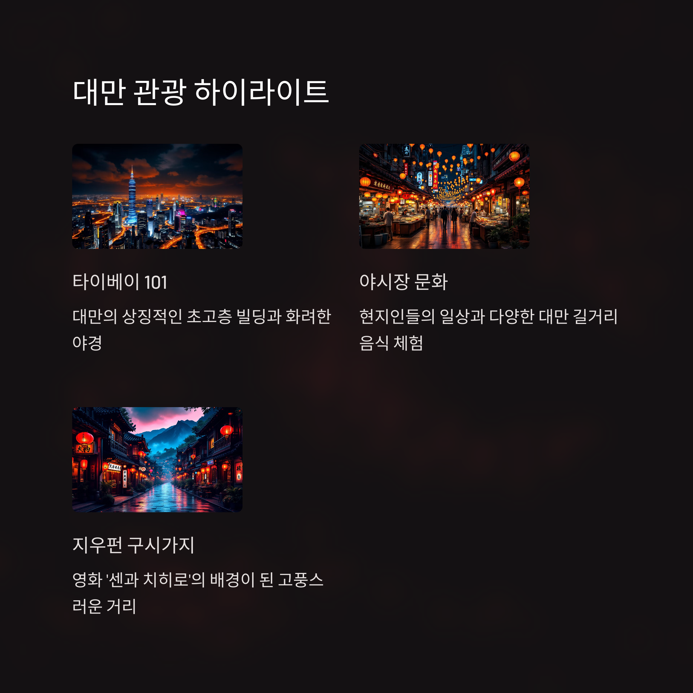 여행은 출발 전 설렘과 함께 시작됩니다. 부산항에서 출발하는 크루즈에 오르면, 탁 트인 바다 전망과 함께 고급 레스토랑, 쇼핑 공간, 수영장, 극장까지 갖춘 선상 시설을 즐기실 수 있습니다. 기항지인 대만 기륭에서는 타이베이의 전통 문화와 미식을 경험하고, 일본 미야코지마에서는 투명한 에메랄드빛 바다와 자연 풍경에 감탄하게 될 것입니다. 무엇보다 편리한 일정과 정성 가득한 서비스는 부모님께 평생 잊지 못할 여행으로 남을 것입니다.