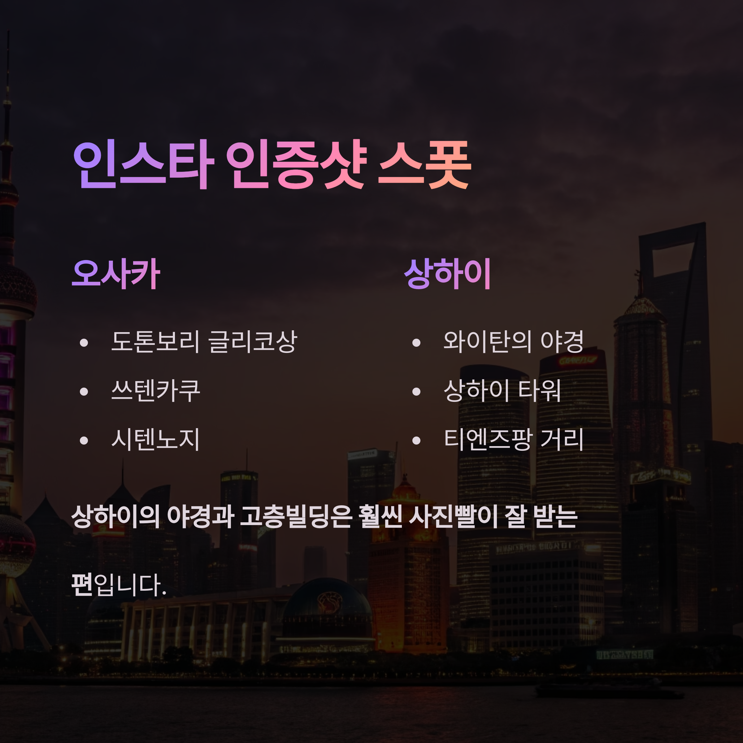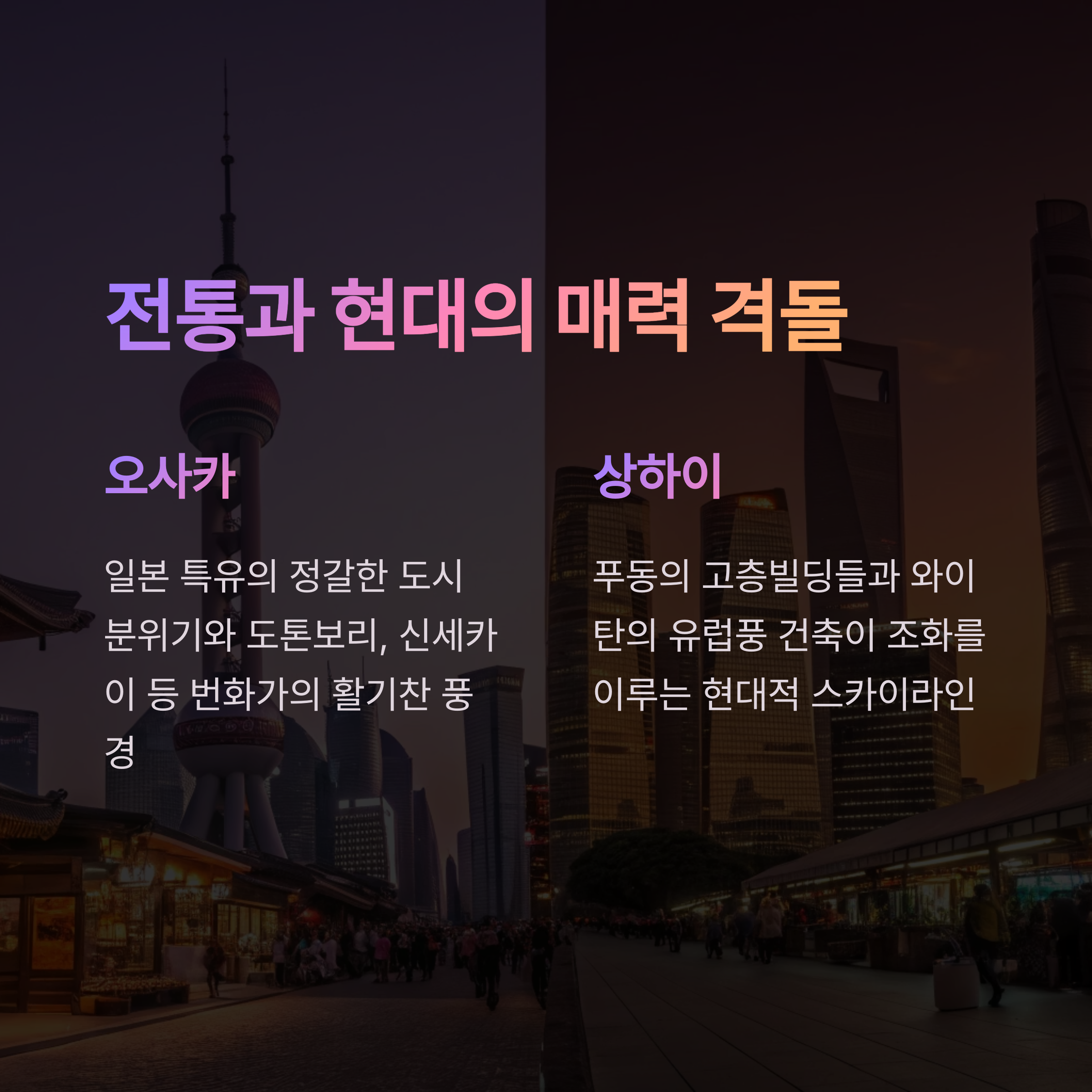 "전통적인 도시 미학을 원한다면 오사카, 현대적 도시 감성을 즐기고 싶다면 상하이!"