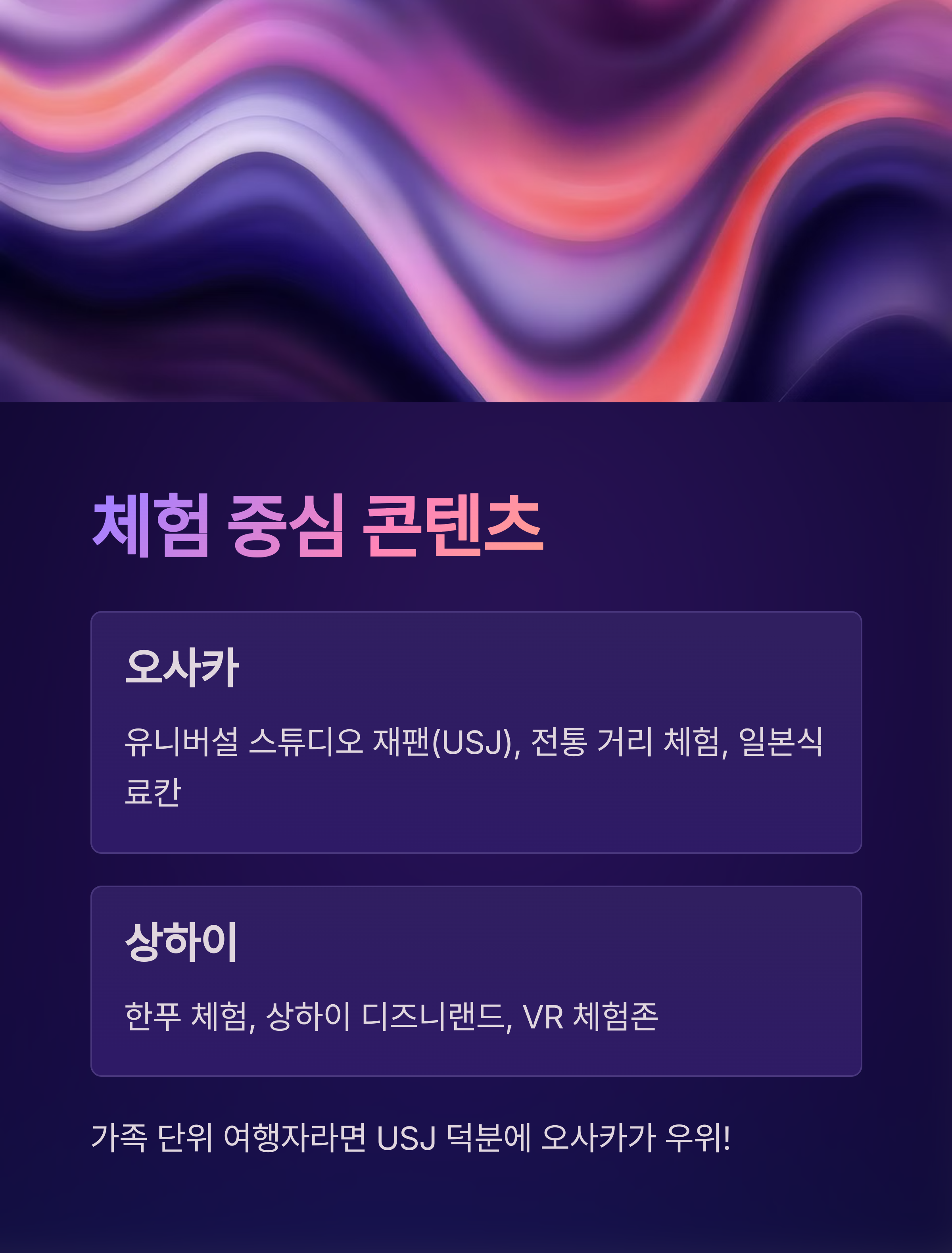 체험 중심 콘텐츠: 어떤 도시가 더 다양한 경험을 줄까?