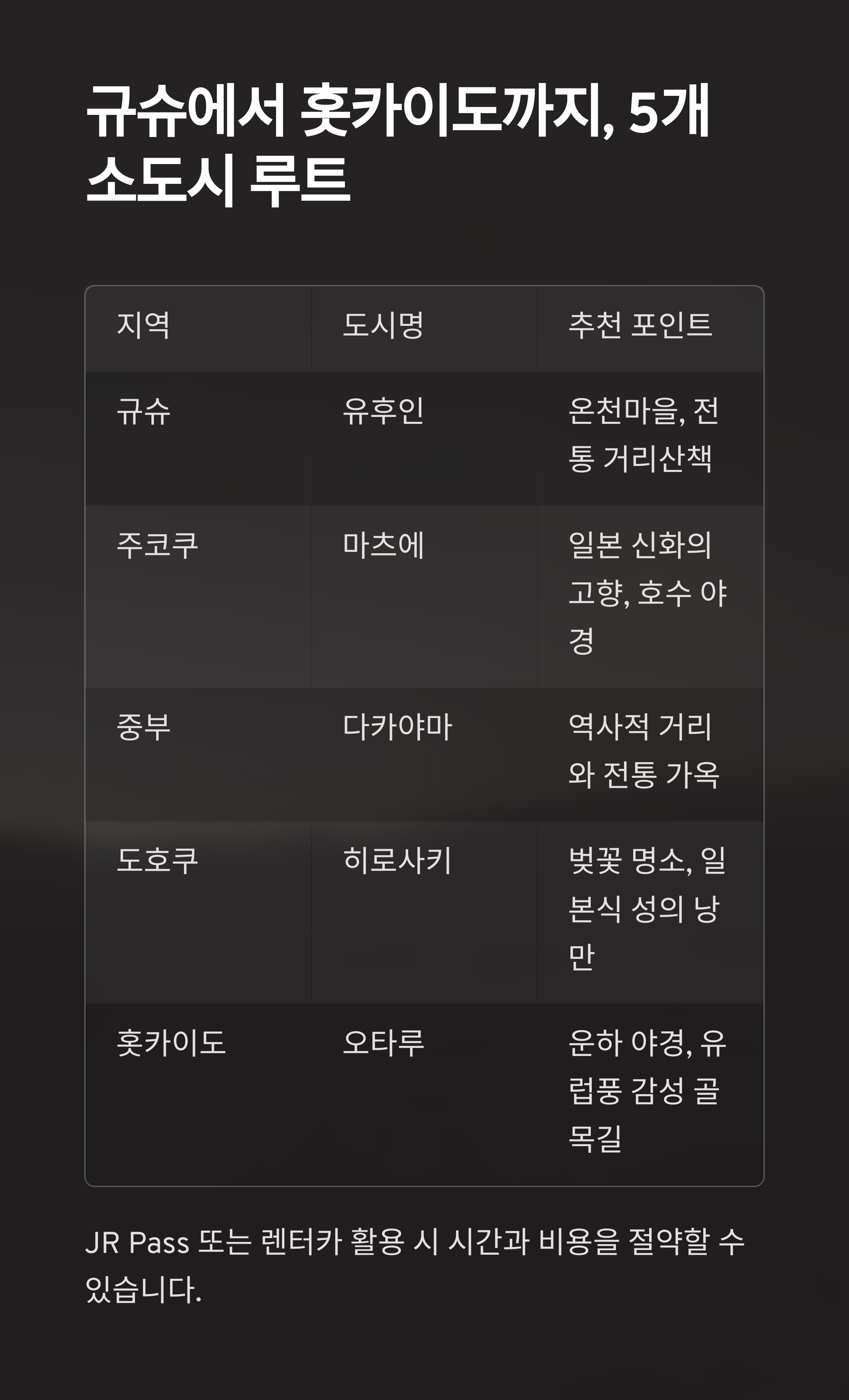 2. 여행 루트 미리보기 – 규슈에서 홋카이도까지 5개 소도시 루트 제안