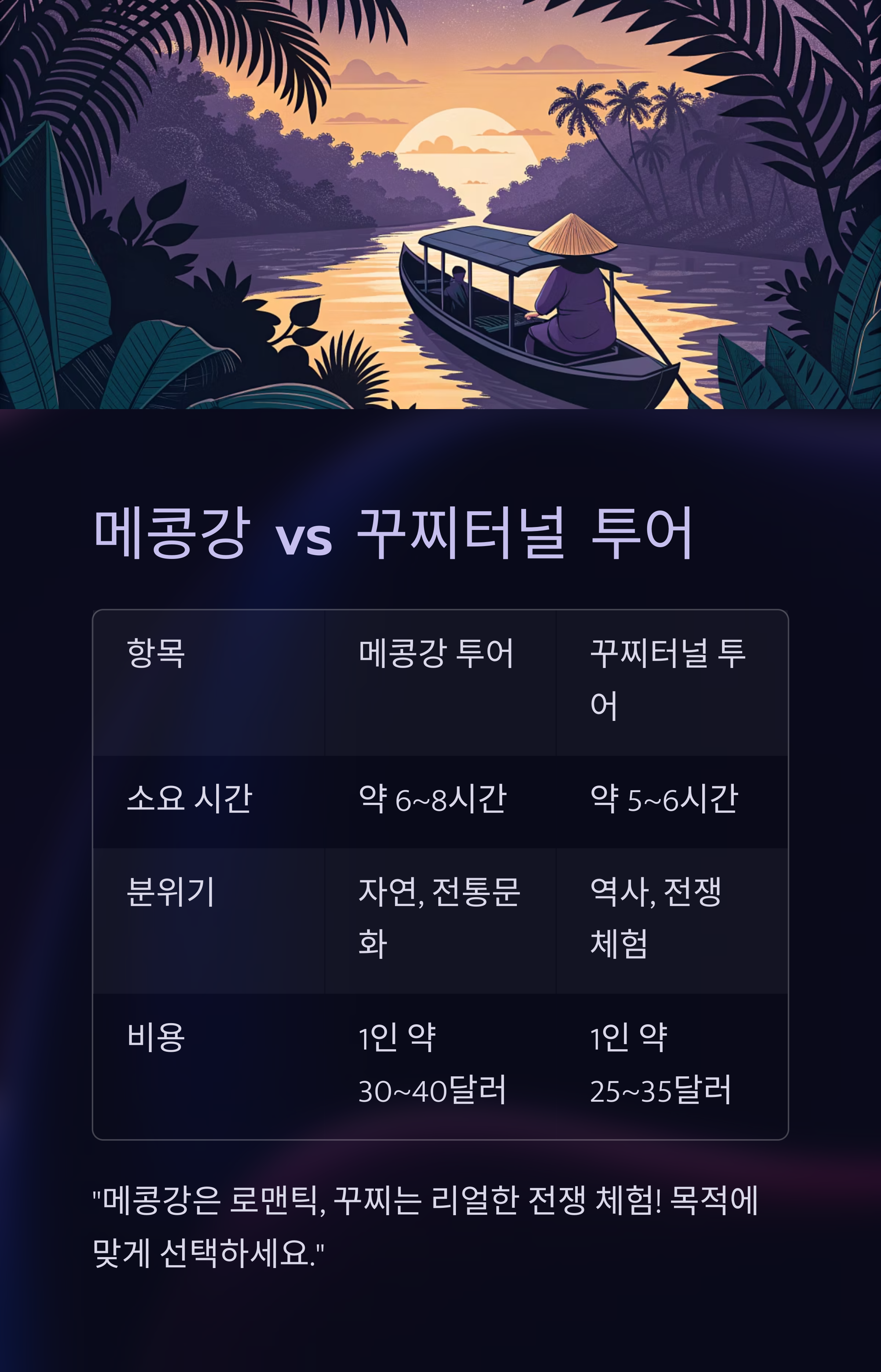 "메콩강은 로맨틱, 꾸찌는 리얼한 전쟁 체험! 목적에 맞게 선택하세요."