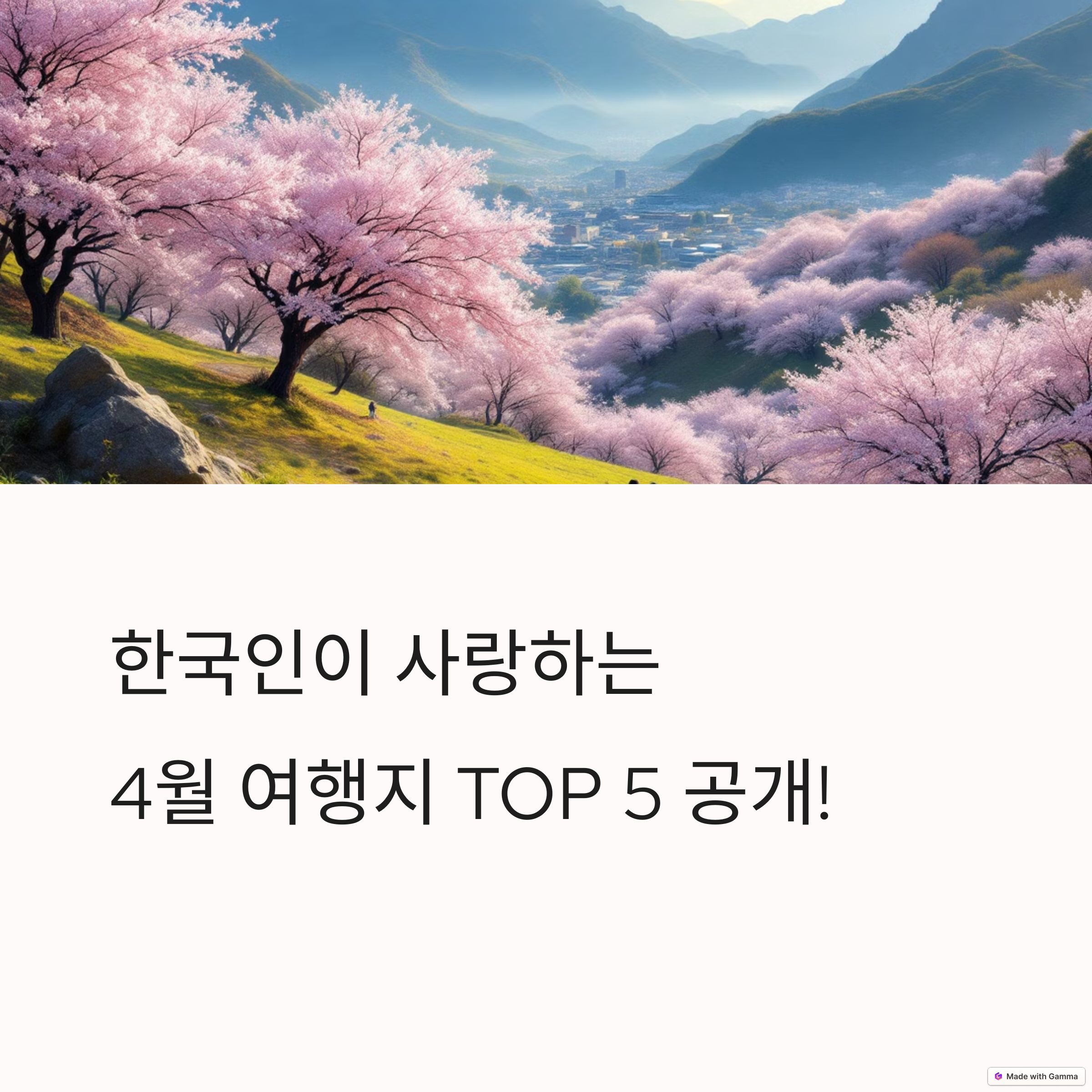 여행을 통해 우리는 새로운 계절을 더 깊이 느끼고, 일상에서 잠시 벗어나 소중한 기억을 남길 수 있습니다. 4월이라는 봄의 중심에서 만나는 자연의 아름다움은 그 어떤 풍경보다 따뜻하고 감동적입니다. 특히 오늘 소개해드린 TOP5 여행지는 각각의 매력과 개성으로 사랑받고 있으며, 벚꽃과 봄꽃, 바다와 도시의 조화가 어우러져 누구와 함께여도 행복한 시간을 만들 수 있습니다. 이번 봄, 사랑하는 사람들과 함께 설레는 여행을 떠나보는 건 어떨까요? 아름다운 순간들이 여러분의 마음에 오래도록 남길 바랍니다.