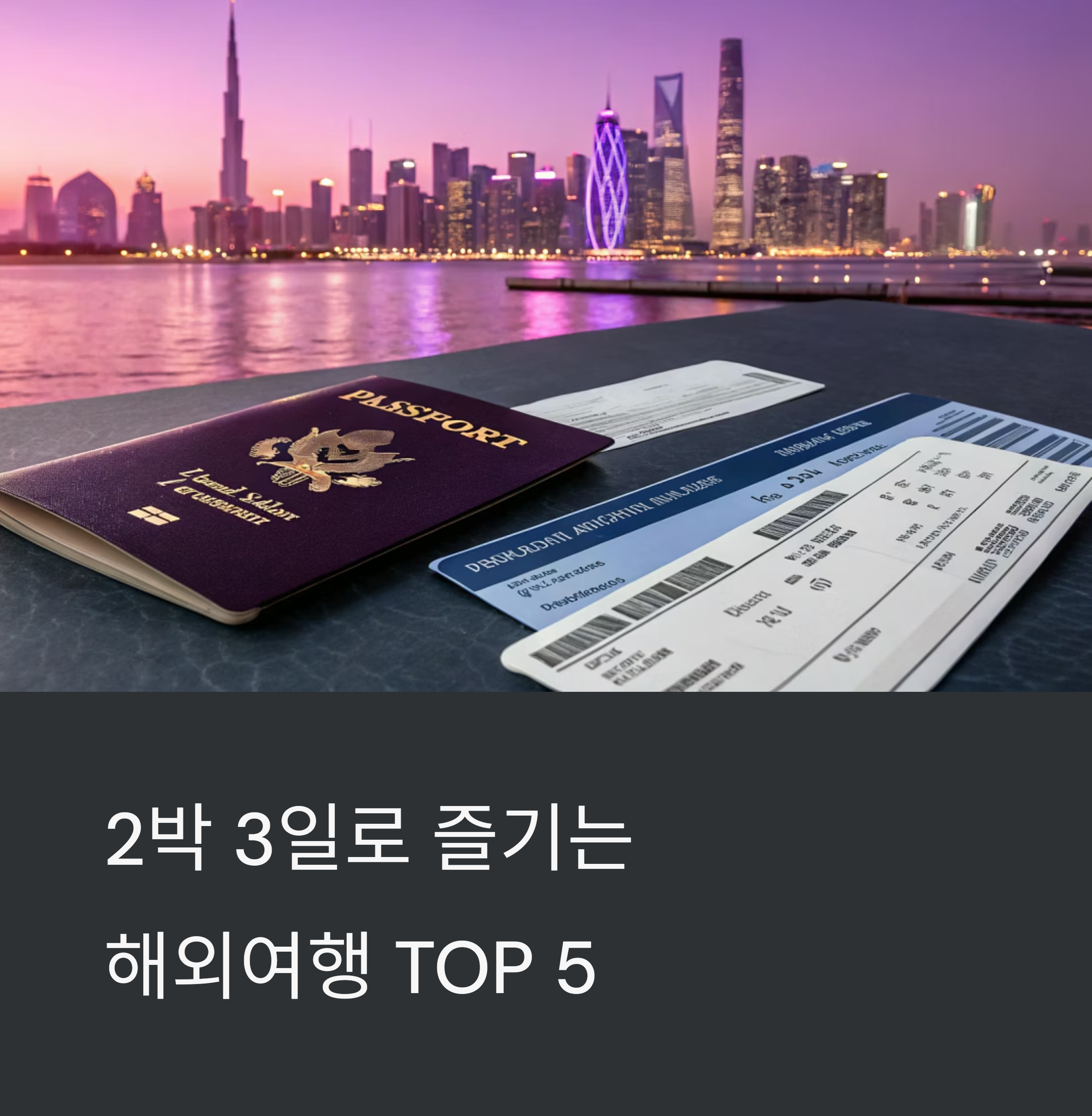 이제 떠나기만 하면 되는 완벽한 2박 3일 여행지 TOP 5를 만나보세요.